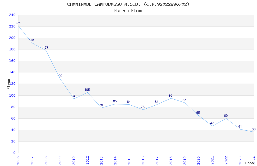| 2014 | 85 | 3.011,95 | 35,43 | 16.599 | 67 | 44 | 25 |