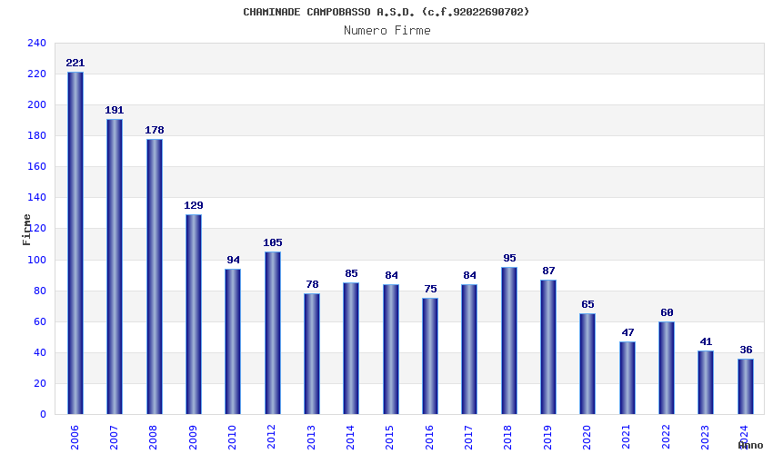 | 2006 | 221 | 5.296,55 | 23,97 | 7.906 | 26 | 19 | 11 |