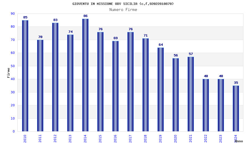 | Anno | Firme | Importi | Media | Naz. | Reg. | Prov. | Comu. |