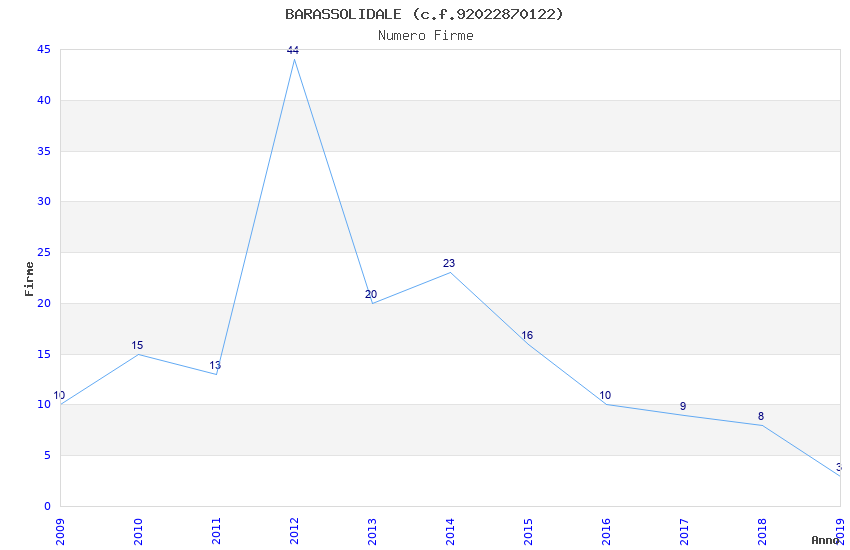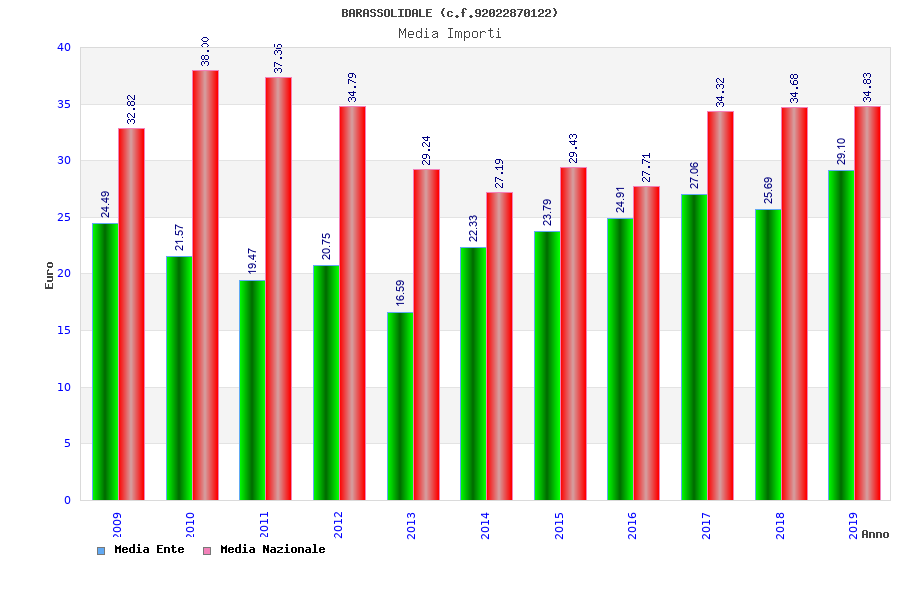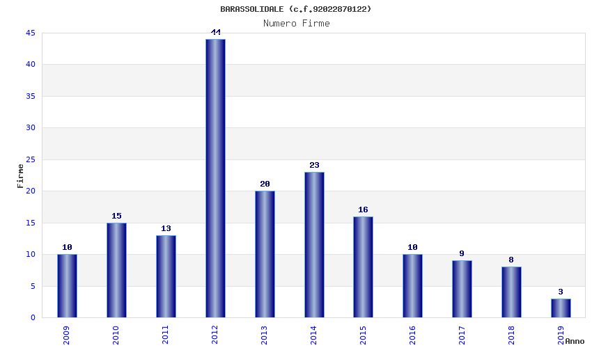 | Anno | Firme | Importi | Media | Naz. | Reg. | Prov. | Comu. |