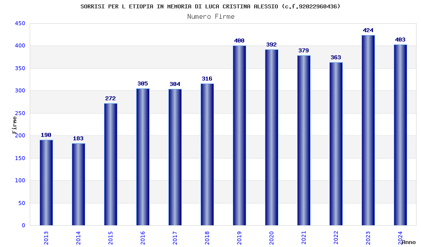 | Anno | Firme | Importi | Media | Naz. | Reg. | Prov. | Comu. |