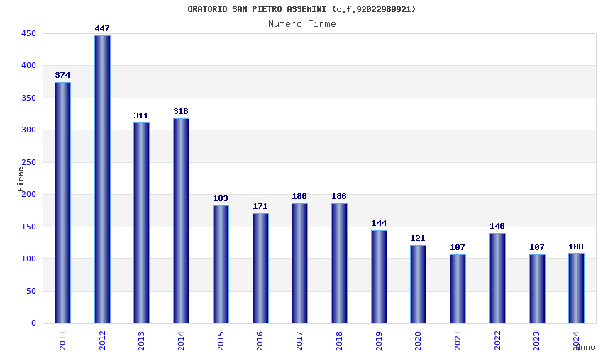 | Anno | Firme | Importi | Media | Naz. | Reg. | Prov. | Comu. |