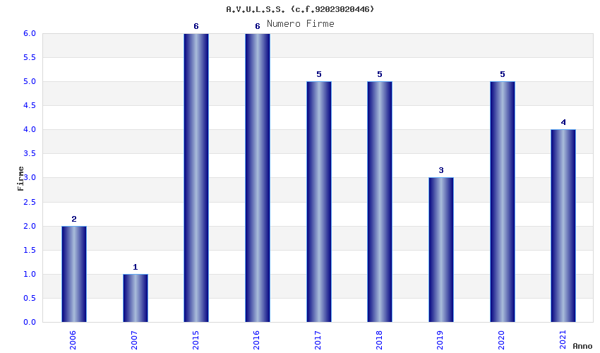 | Anno | Firme | Importi | Media | Naz. | Reg. | Prov. | Comu. |