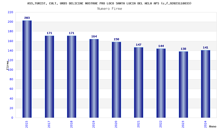 | 2015 | 203 | 2.878,01 | 14,18 | 16.996 | 1.009 | 172 | 2 |