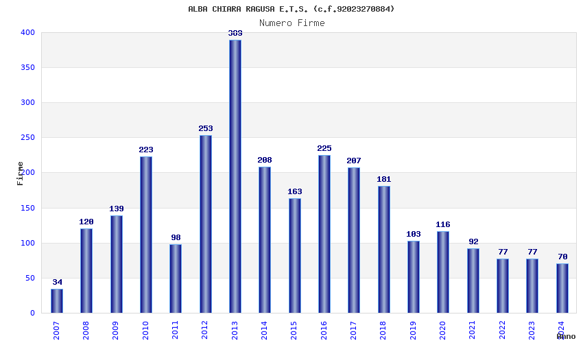 | Anno | Firme | Importi | Media | Naz. | Reg. | Prov. | Comu. |