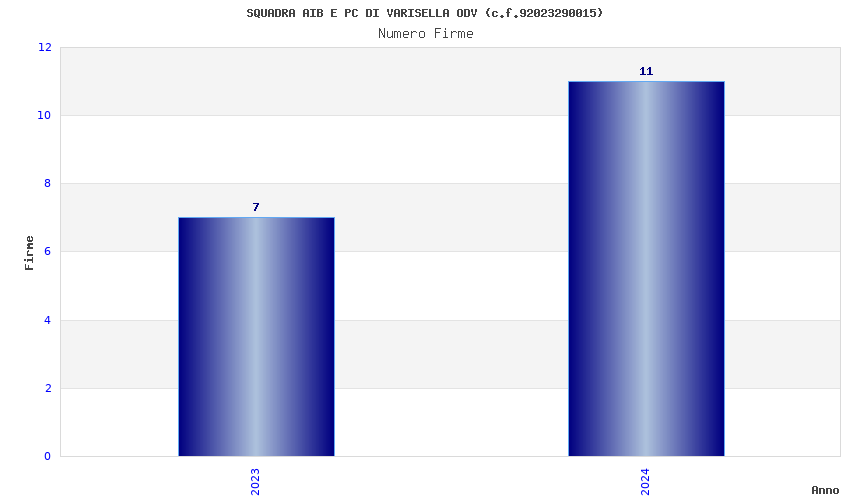 | Anno | Firme | Importi | Media | Naz. | Reg. | Prov. | Comu. |