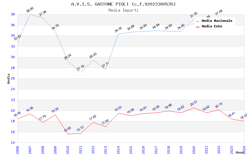 | Anno | Firme | Importi | Media | Naz. | Reg. | Prov. | Comu. |