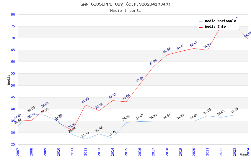 | Anno | Firme | Importi | Media | Naz. | Reg. | Prov. | Comu. |