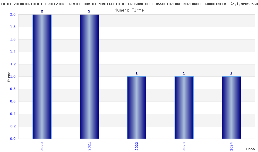 | Anno | Firme | Importi | Media | Naz. | Reg. | Prov. | Comu. |