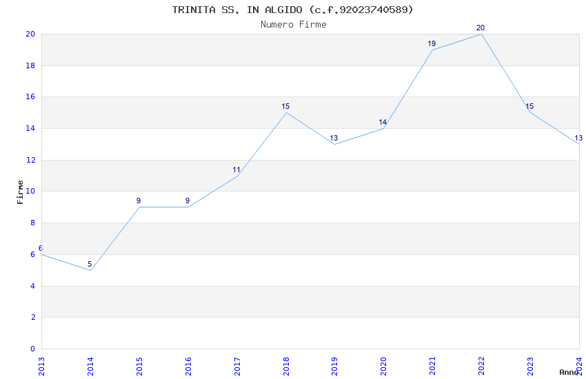 | 2019 | 13 | 376,60 | 28,97 | 49.250 | 4.217 | 3.361 | 4 |