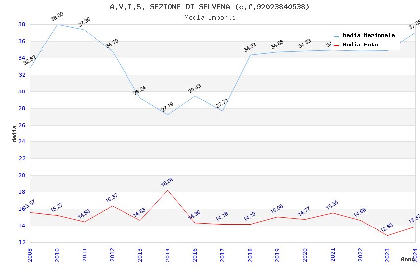 | Anno | Firme | Importi | Media | Naz. | Reg. | Prov. | Comu. |