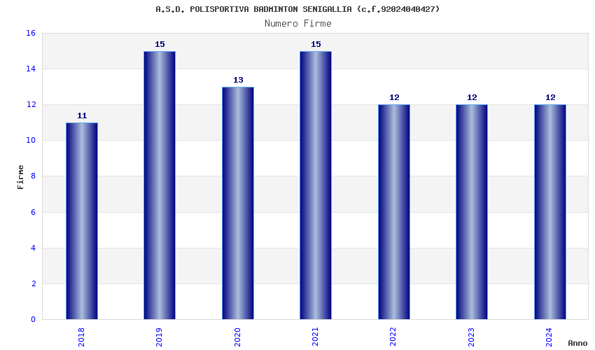 | 2021 | 15 | 803,49 | 53,57 | 40.126 | 1.043 | 412 | 36 |