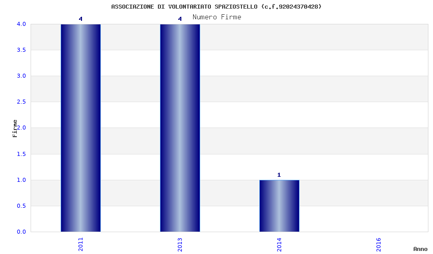 | Anno | Firme | Importi | Media | Naz. | Reg. | Prov. | Comu. |