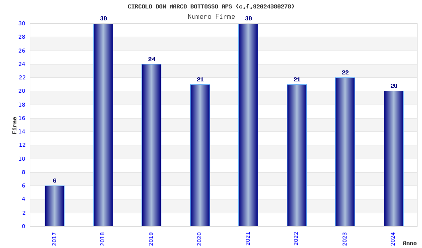 | Anno | Firme | Importi | Media | Naz. | Reg. | Prov. | Comu. |