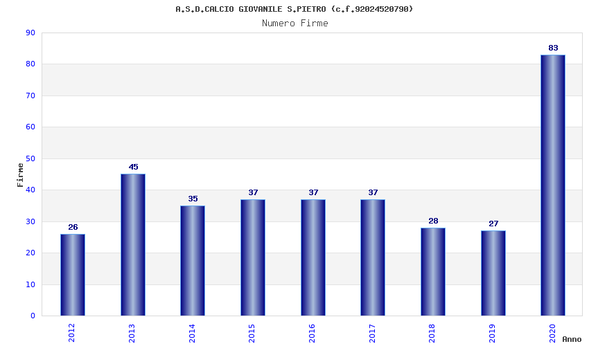 | Anno | Firme | Importi | Media | Naz. | Reg. | Prov. | Comu. |