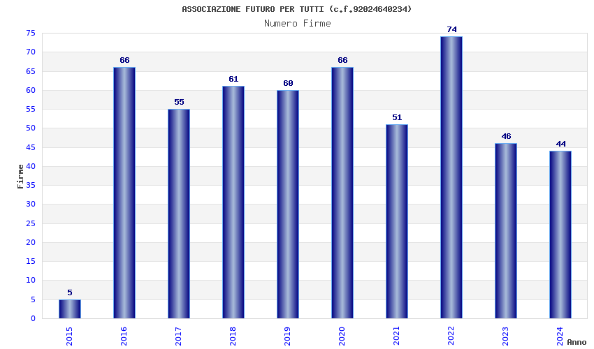 | Anno | Firme | Importi | Media | Naz. | Reg. | Prov. | Comu. |