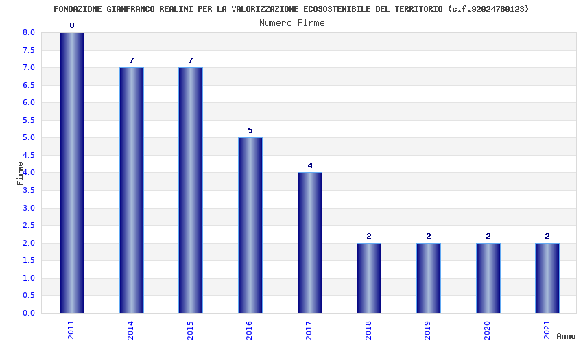 | Anno | Firme | Importi | Media | Naz. | Reg. | Prov. | Comu. |