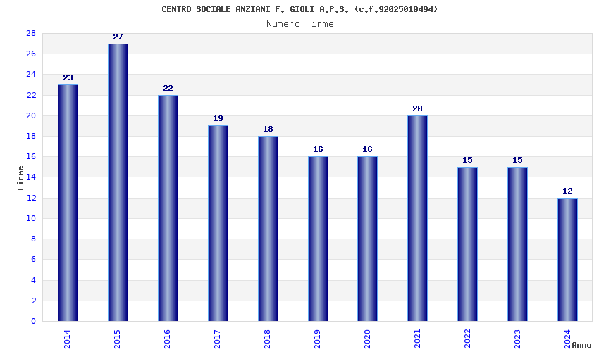 | Anno | Firme | Importi | Media | Naz. | Reg. | Prov. | Comu. |