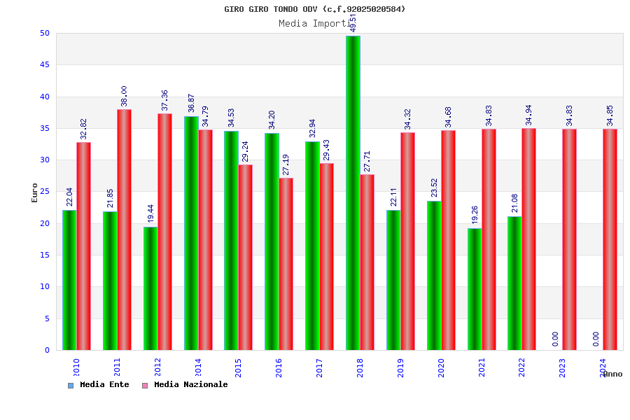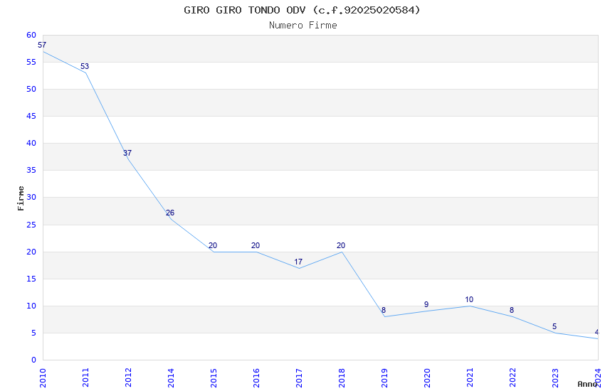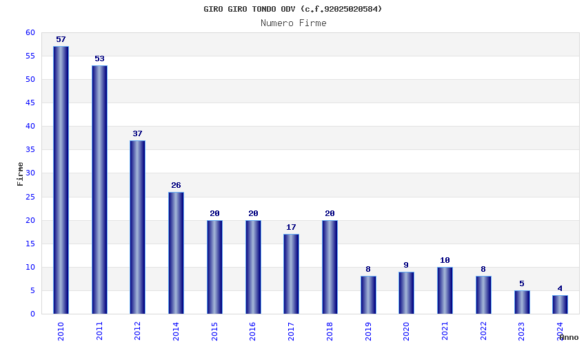 | Anno | Firme | Importi | Media | Naz. | Reg. | Prov. | Comu. |