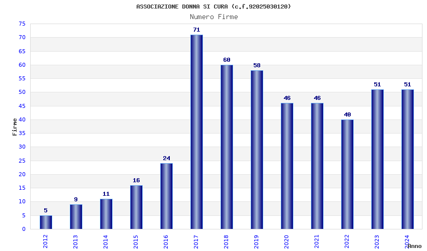 | Anno | Firme | Importi | Media | Naz. | Reg. | Prov. | Comu. |