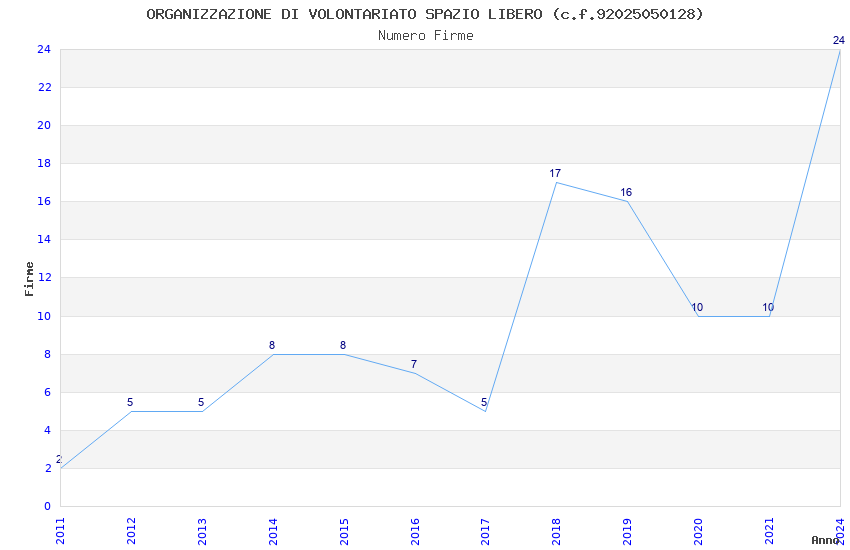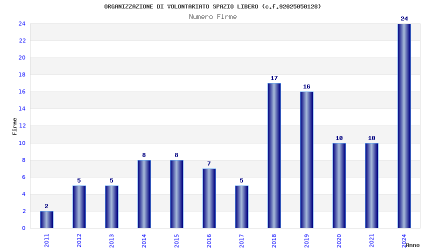 | Anno | Firme | Importi | Media | Naz. | Reg. | Prov. | Comu. |