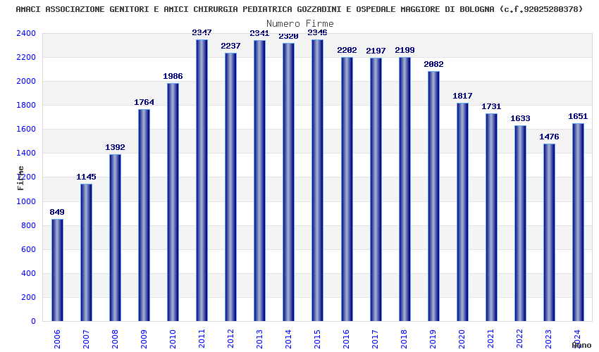 | Anno | Firme | Importi | Media | Naz. | Reg. | Prov. | Comu. |