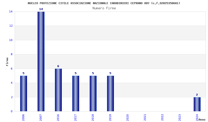 | Anno | Firme | Importi | Media | Naz. | Reg. | Prov. | Comu. |