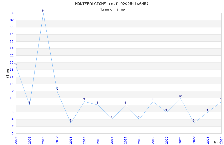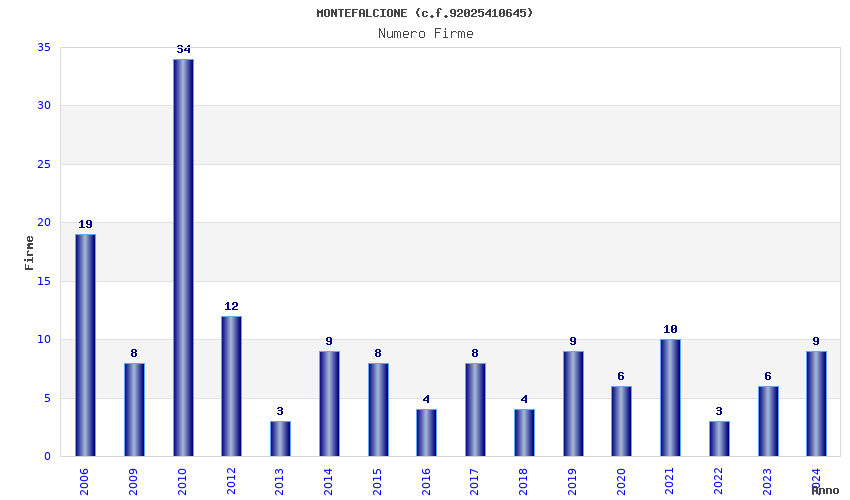 | Anno | Firme | Importi | Media | Naz. | Reg. | Prov. | Comu. |