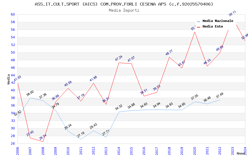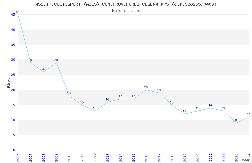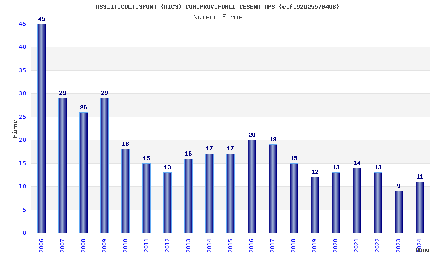 | Anno | Firme | Importi | Media | Naz. | Reg. | Prov. | Comu. |