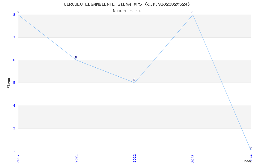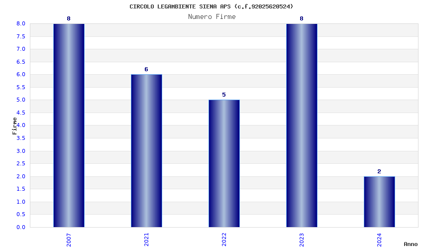 | Anno | Firme | Importi | Media | Naz. | Reg. | Prov. | Comu. |