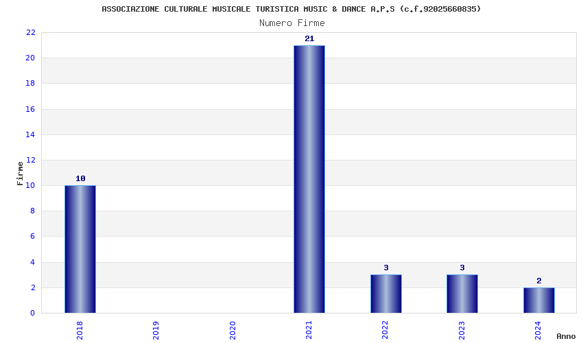 | Anno | Firme | Importi | Media | Naz. | Reg. | Prov. | Comu. |