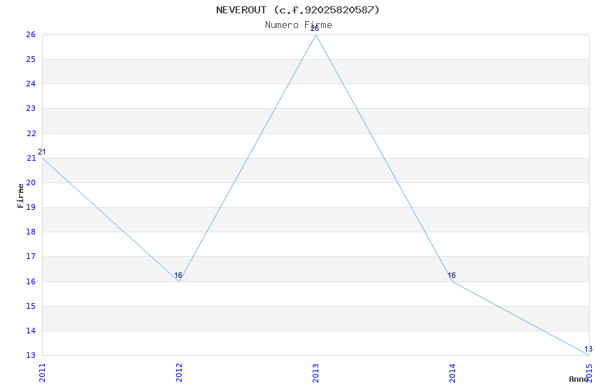 | Anno | Firme | Importi | Media | Naz. | Reg. | Prov. | Comu. |