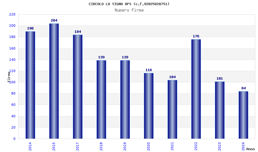 Anno Firme Importi Media Naz. Reg. Prov. Comu.
