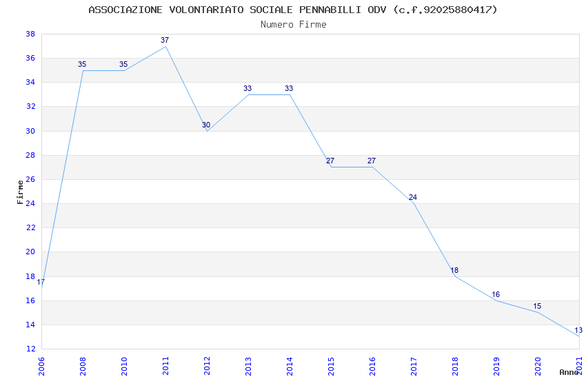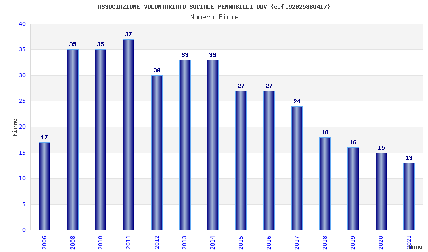 | Anno | Firme | Importi | Media | Naz. | Reg. | Prov. | Comu. |
