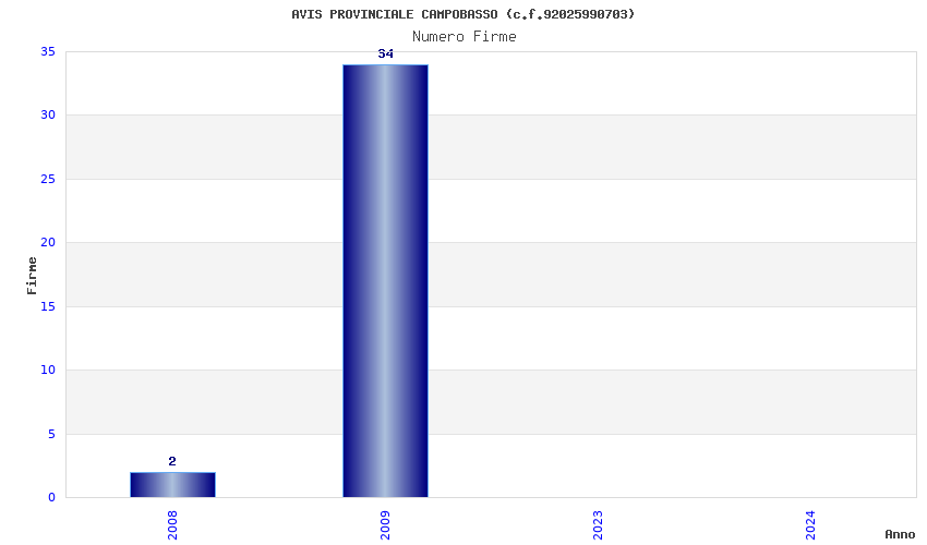 | Anno | Firme | Importi | Media | Naz. | Reg. | Prov. | Comu. |
