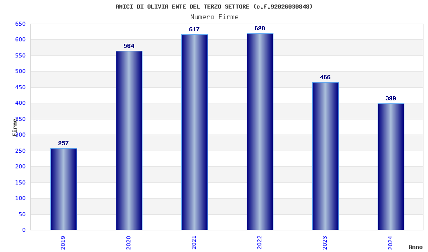 | Anno | Firme | Importi | Media | Naz. | Reg. | Prov. | Comu. |