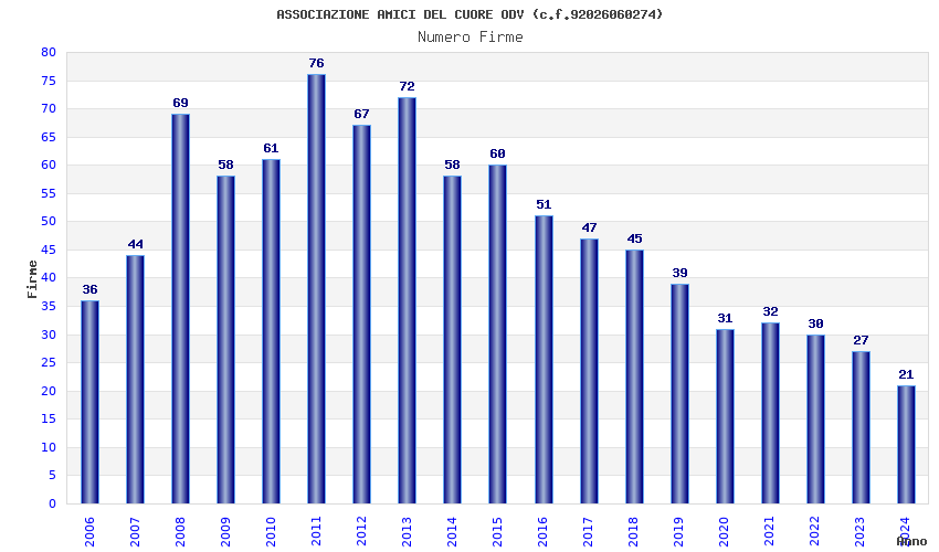 | Anno | Firme | Importi | Media | Naz. | Reg. | Prov. | Comu. |