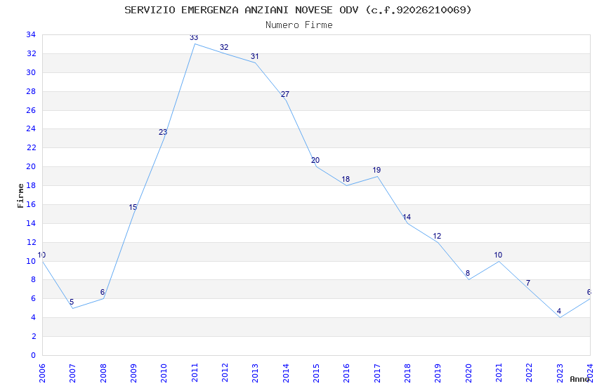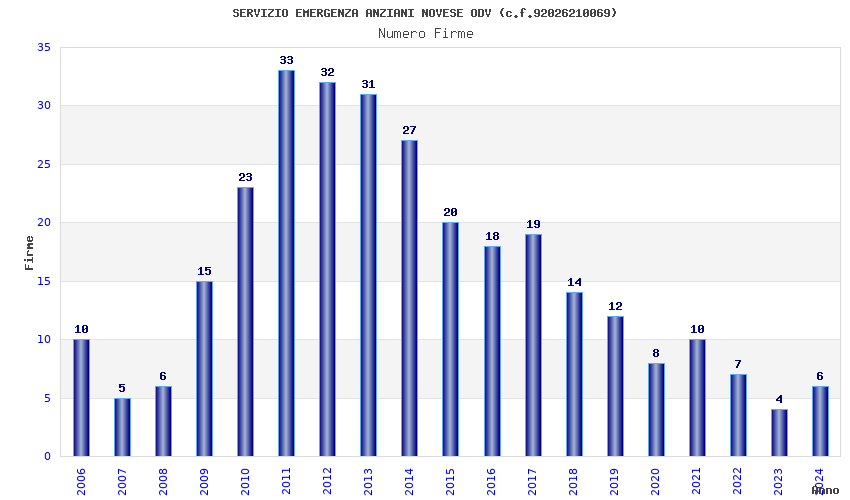 | Anno | Firme | Importi | Media | Naz. | Reg. | Prov. | Comu. |