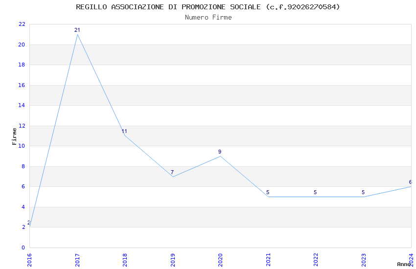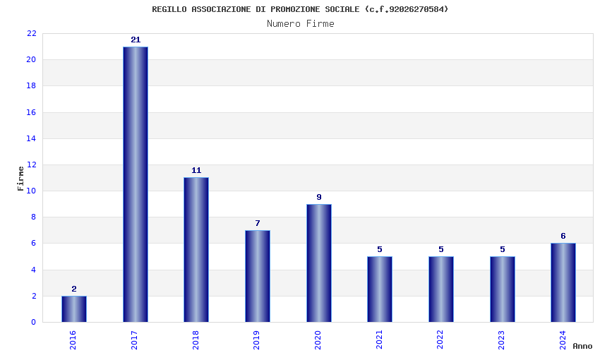 | Anno | Firme | Importi | Media | Naz. | Reg. | Prov. | Comu. |