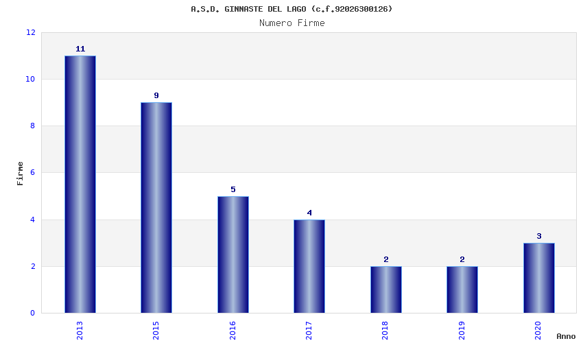 | Anno | Firme | Importi | Media | Naz. | Reg. | Prov. | Comu. |