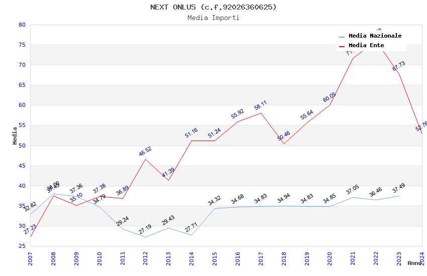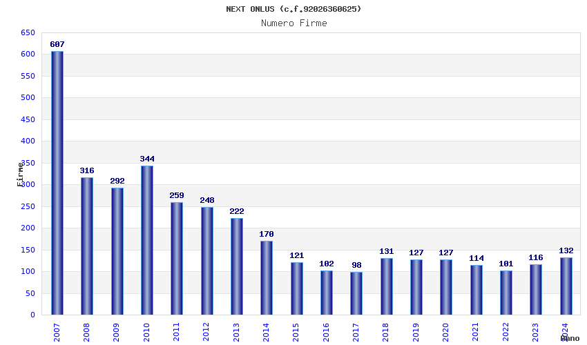 | Anno | Firme | Importi | Media | Naz. | Reg. | Prov. | Comu. |
