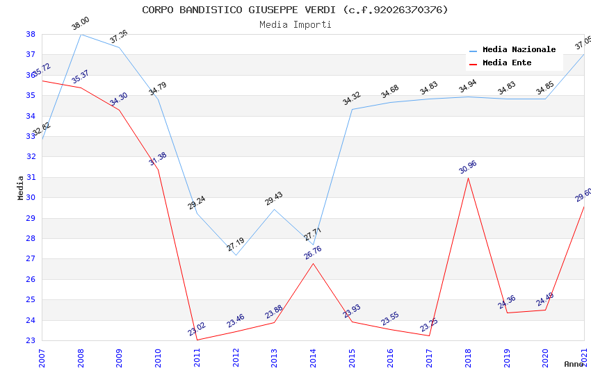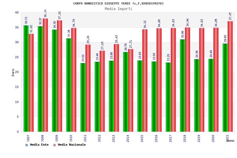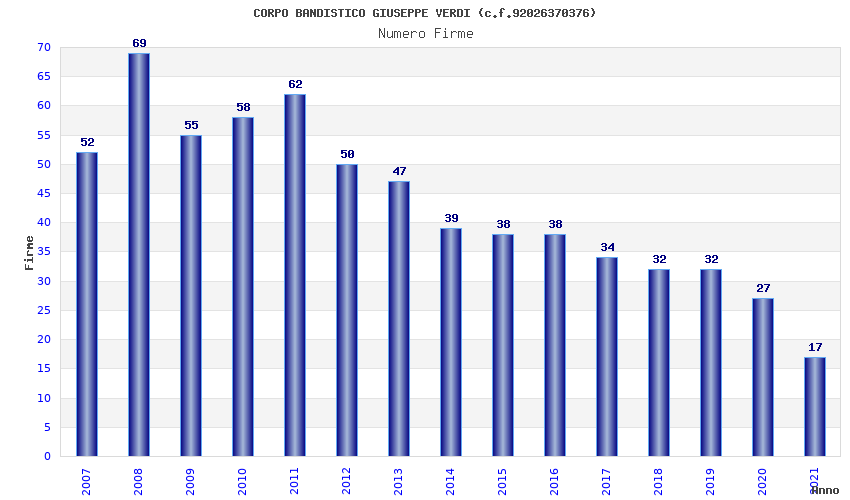 | Anno | Firme | Importi | Media | Naz. | Reg. | Prov. | Comu. |