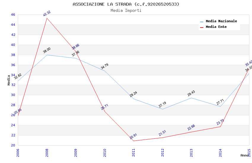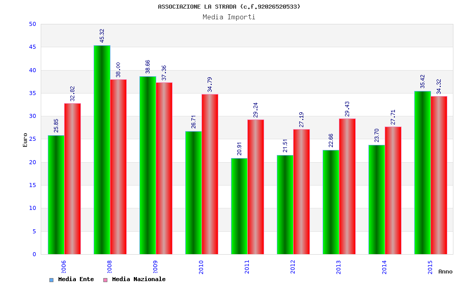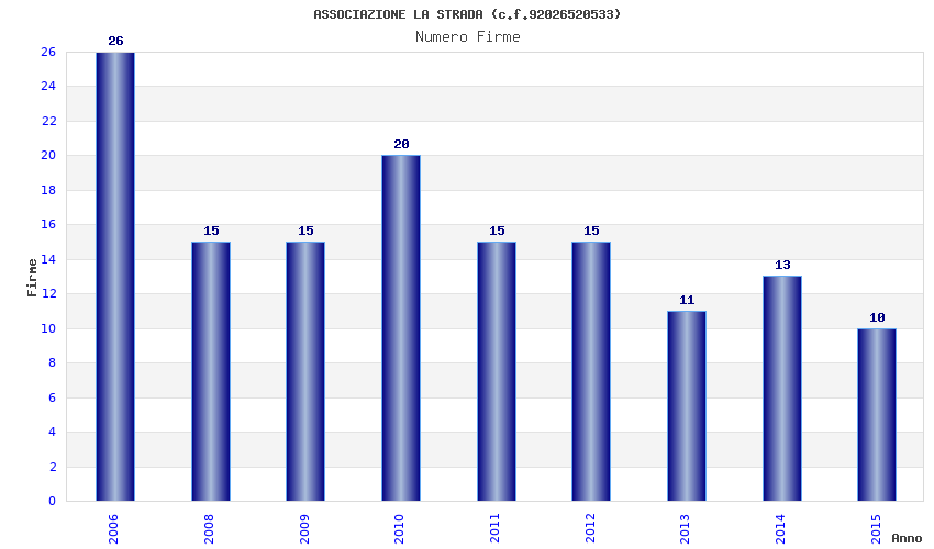 | Anno | Firme | Importi | Media | Naz. | Reg. | Prov. | Comu. |