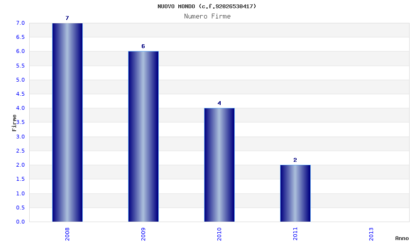 | Anno | Firme | Importi | Media | Naz. | Reg. | Prov. | Comu. |