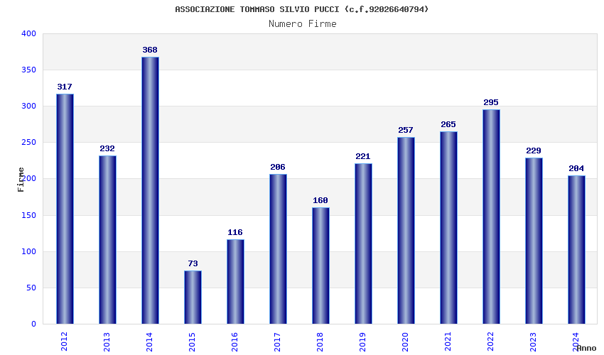 Anno Firme Importi Media Naz. Reg. Prov. Comu.