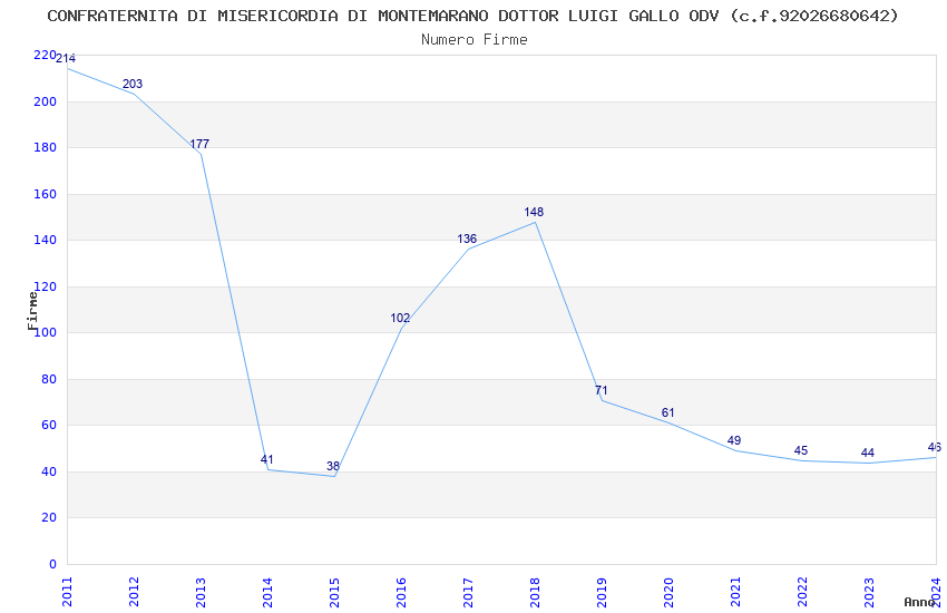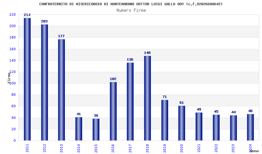 | 2024 | 46 | 1.005,70 | 21,86 | 37.497 | 2.242 | 209 | 2 |