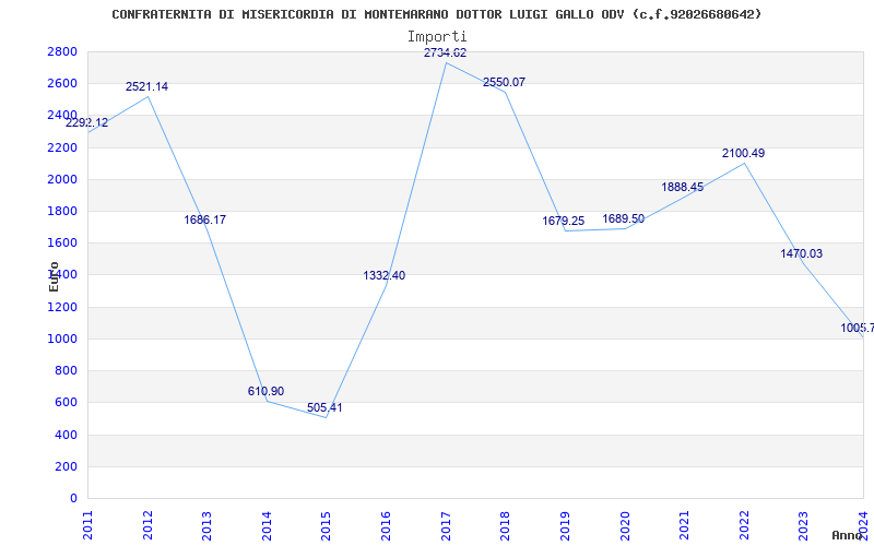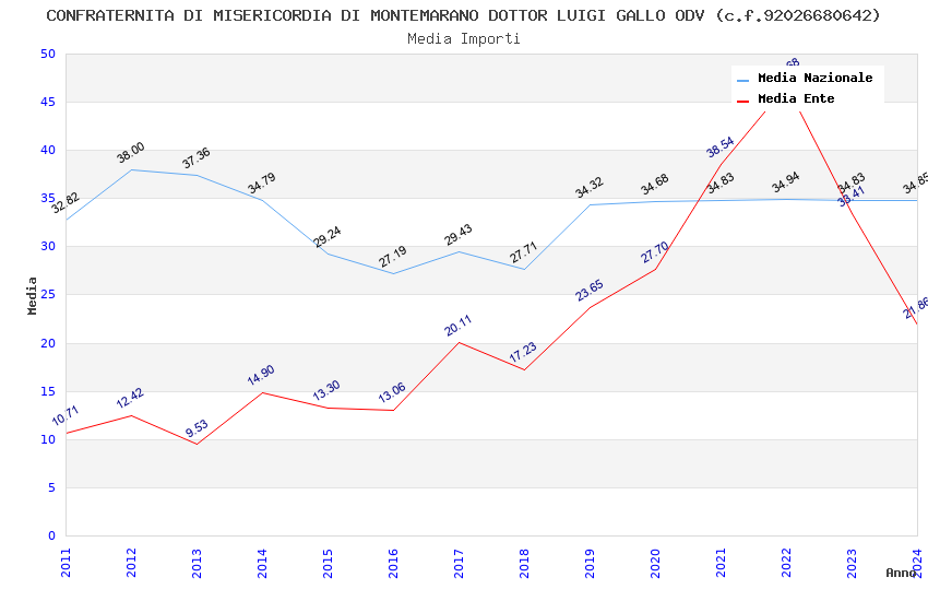 | Anno | Firme | Importi | Media | Naz. | Reg. | Prov. | Comu. |