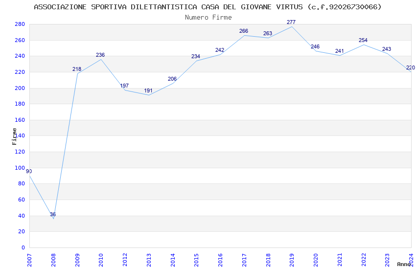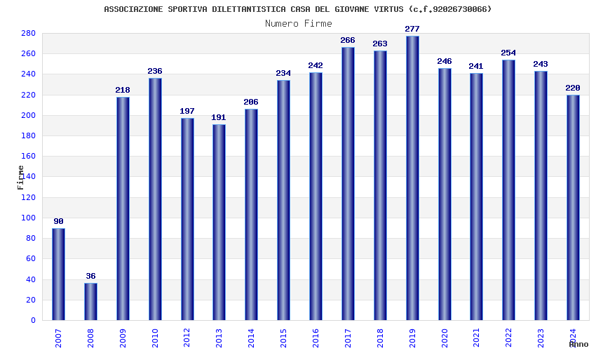 | 2019 | 277 | 9.951,15 | 35,92 | 5.188 | 356 | 29 | 5 |