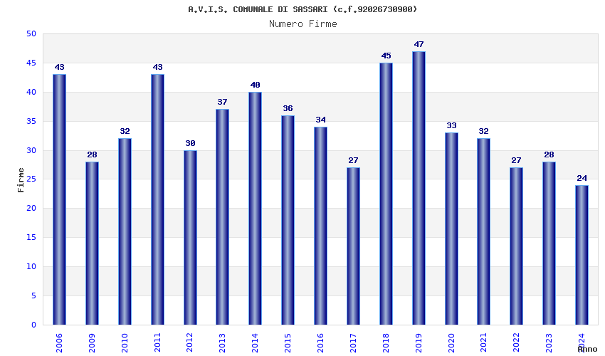 | Anno | Firme | Importi | Media | Naz. | Reg. | Prov. | Comu. |