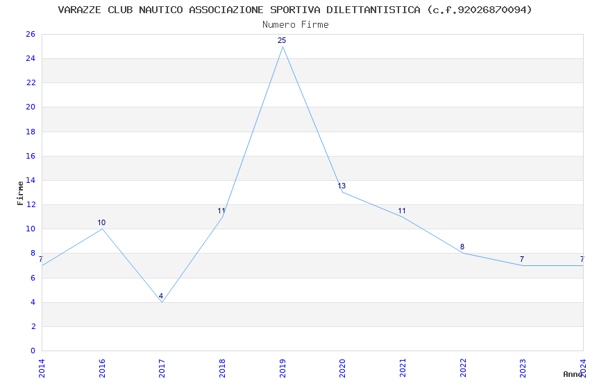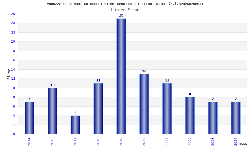 | 2019 | 25 | 3.644,65 | 145,79 | 14.946 | 374 | 64 | 3 |